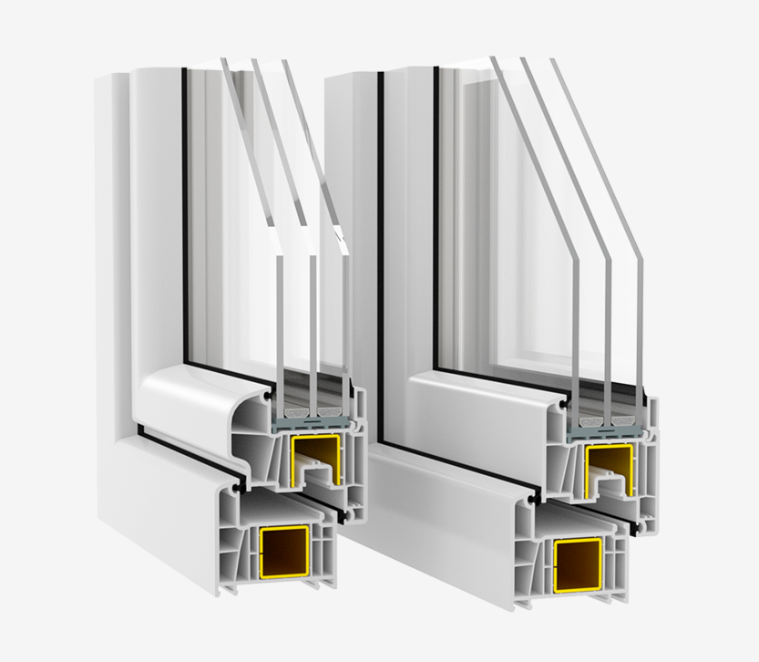 Profile systemu mają budowę trójkomorową. Głębokość konstrukcyjna kształtowników okna wynosi: 70 mm (ościeżnica), 79 mm